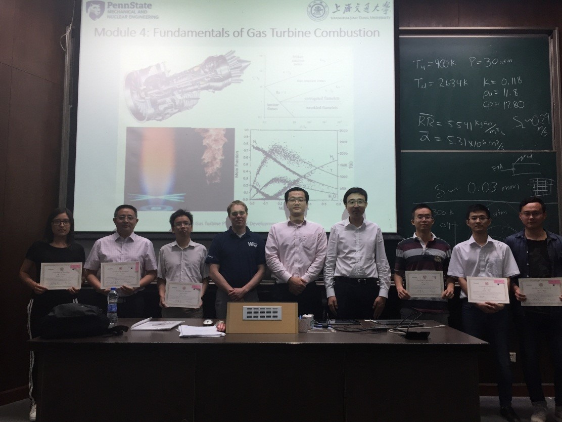 6月16日,由西门子冠名的“先进燃气轮机技术”课程结业。宾州州立大学助理教授Dr. Xuan Yuan与买球官网叶轮机械研究所彭迪博士为参加此次课程的学员颁发了结业证书。