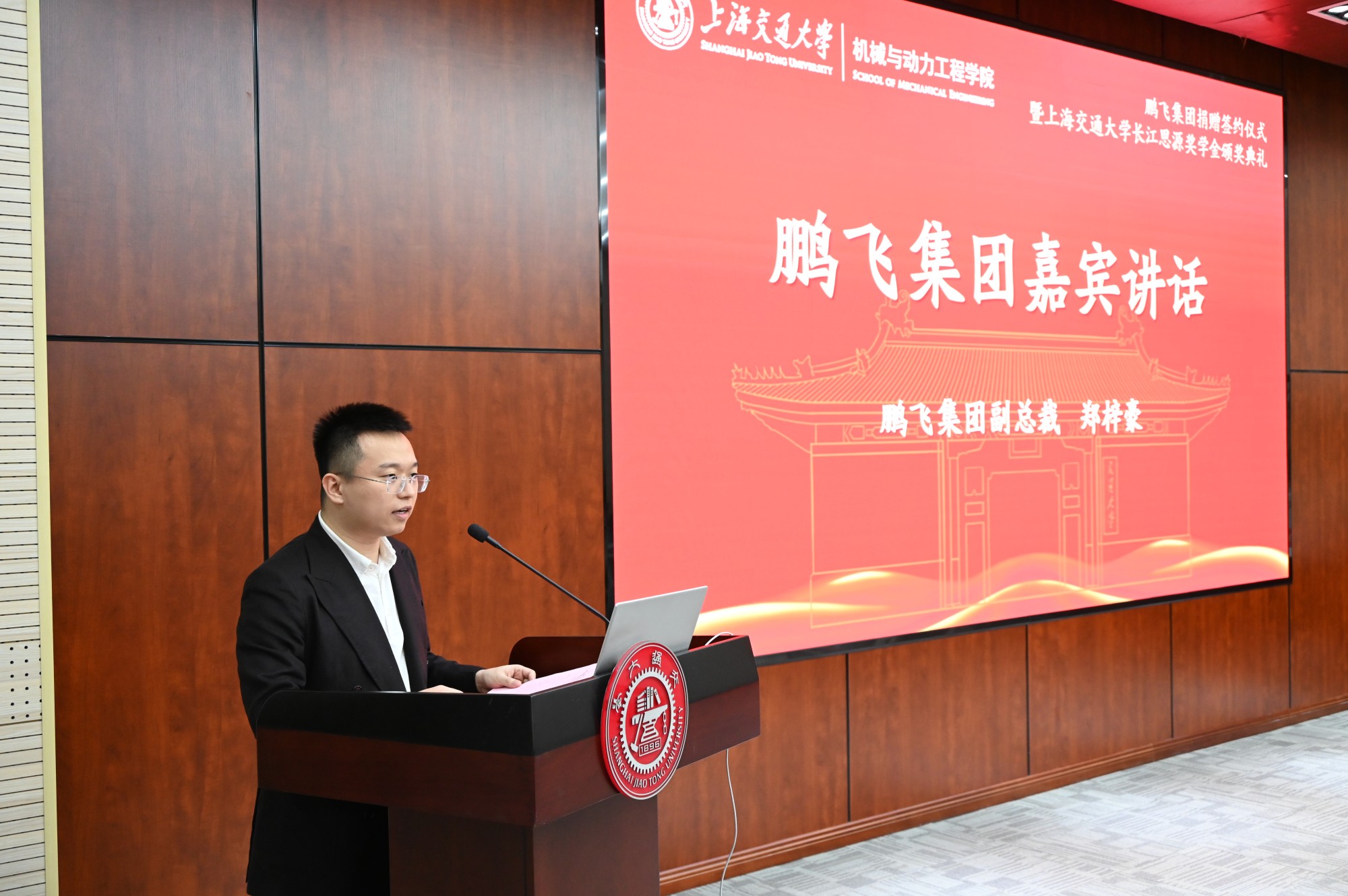 3月15日,鹏飞集团捐赠签约仪式暨2023年度买球官方网站长江思源奖学金颁奖典礼举行。鹏飞集团董事局主席兼总裁郑鹏,副总裁、战略投资部部长郑梓豪等出席活动。原买球官方网站校长、中国工程院院士林忠钦,上海交大党委副书记林立涛,买球官方网站院长杜朝辉,上海交大教育发展基金会副秘书长李毅,买球官方网站副院长朱磊、党委副书记张执南等相关教师以及“长江思源”奖助学金获得者们参加了仪式。活动由朱磊主持。