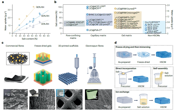 本文基于基本热力学原理评估了吸湿盐掺杂复合吸附剂的理论吸附量和解吸焓,提出了增强吸附动力学的策略,制定了开发高稳定性、无泄漏材料的指导方针,同时还从能量流的角度提出了改善吸附-解吸的策略。论文为吸附式空气取水领域后续发展指出了材料设计方面的发展和考虑方向,有望为后续材料的精准设计与系统的优化提供思路。