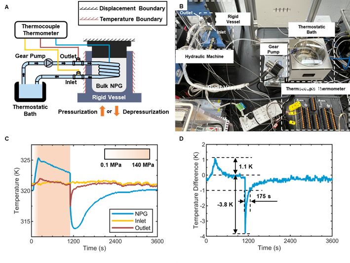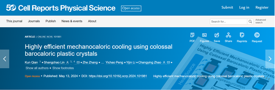 近日,工程热物理研究所林尚超课题组在Cell Press旗下Cell Reports Physical Science上发表题为“Highly efficient mechanocaloric cooling using colossal barocaloric plastic crystals”的论文,利用低成本的压卡相变塑料晶体材料新戊二醇,设计并搭建了国内首台近室温的压卡冷却循环测试原型样机,为实现大规模清洁绿色制冷技术提供了新的解决思路。工程热物理研究所博士研究生千坤和林尚超副教授为论文共同第一作者,林尚超副教授、赵长颖教授和中国科学院金属研究所李昺研究员为共同通讯作者。
