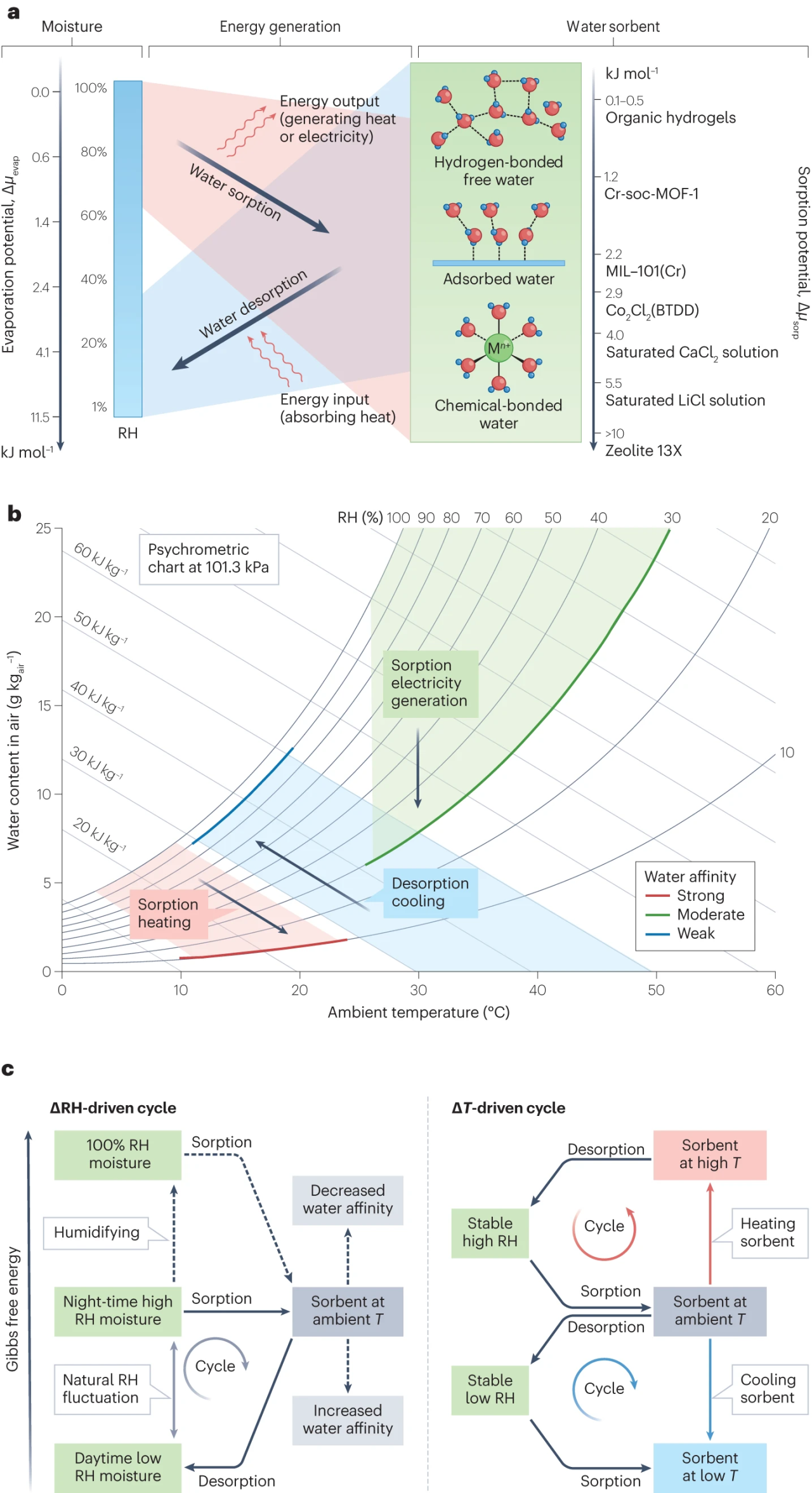 湿度诱导可持续能源技术的热力学特征与潜力