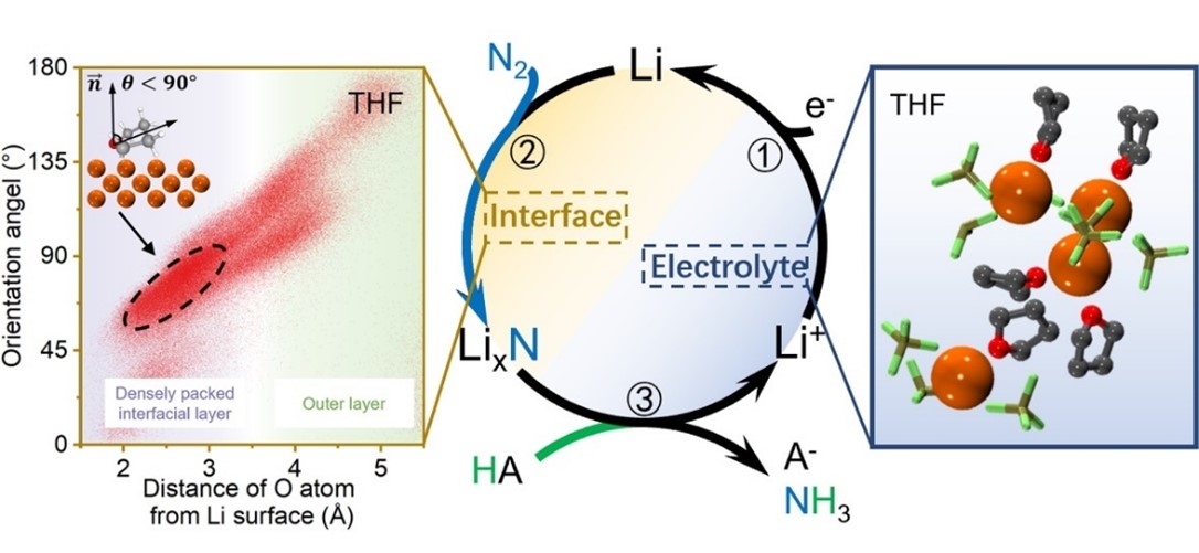氨是全球年产量排名第二的化工原料,被广泛运用于农业、工业、医药、新能源等领域。目前,人类生产生活所需要的氨主要通过哈伯反应在高温、高压下得到。针对哈伯反应当前存在的高能耗、高二氧化碳排放等问题,锂介导氮气还原反应为合成氨过程提供了新思路,即以电能替代传统热力学能,实现了常温常压下的固氮反应,故被认为是一种极具潜力的合成氨替代技术。然而,锂介导合成氨也面临着反应速率受限、副反应突出、氨产物分离困难等技术瓶颈,这些问题为电解液的进一步优化提出了新的挑战。