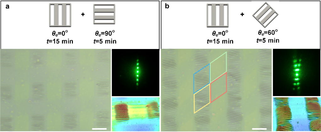 利用该策略,可以制备复杂的动态光栅结构,并能使各类功能层材料的结构有序化。这种功能化的可调褶皱模具平台可用于快速、低成本地制备微纳米周期性结构,在柔性电子、微加工、传感和微/纳米通道等方面有着巨大的应用潜力。