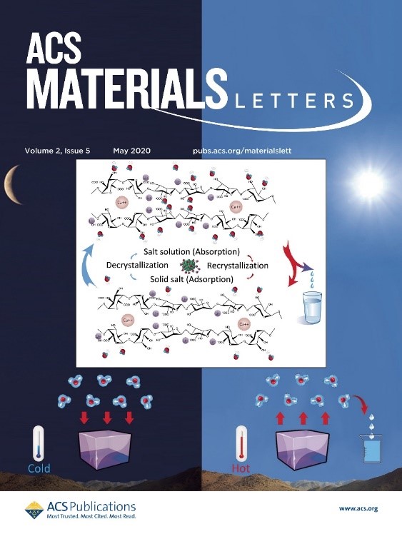 近日,制冷与低温工程研究所(以下简称“制冷所”)王如竹教授领衔的能源-空气-水创新团队(Innovative Team for Energy, Water & Air,ITEWA)在美国化学会新刊ACS Materials Letters上发表了题为“Super atmospheric water harvesting hydrogel with alginate chains modified with binary salts”的论文,首次提出了一种结合了二元亲水聚合盐(Bina)与功能化多壁碳纳米管(FCNT),具有吸附容量大、蒸发效率高、结构稳定、制备简单、成本低廉等显著优势的复合吸水水凝胶材料,并通过实验证实了这种新型材料在应用于太阳能驱动空气取水设备时的优异性能。论文第一作者是制冷所外籍博士Akram Entezari,另一位外籍在读博士Mojtaba Ejeian也参与了此项研究工作;通讯作者是王如竹教授。该文为ACS Materials Letters当期封面论文。