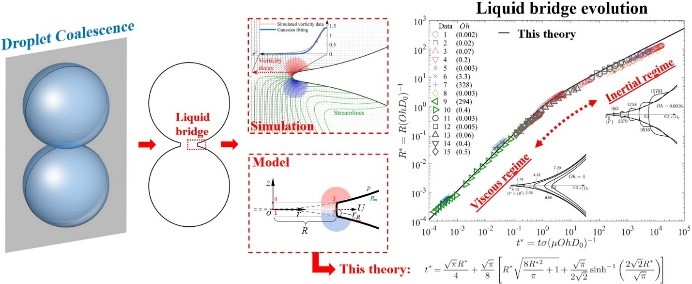 近日,买球官方网站夏溪副教授与香港理工大学张鹏副教授合作,在《美国科学院院报》(Proceedings of National Academy of Sciences)上发表论文,揭示液滴融合过程中“液桥”不同增长规律的奥秘,提出了一个“液桥”增长的统一理论,有效兼容并整合了前人发现的粘性和惯性区间的规律。夏溪为论文第一作者。