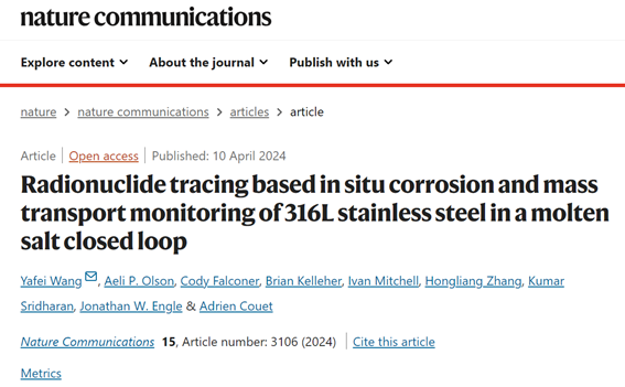 王亚飞副教授提出通过放射性核素示踪实现熔盐腐蚀在线监测