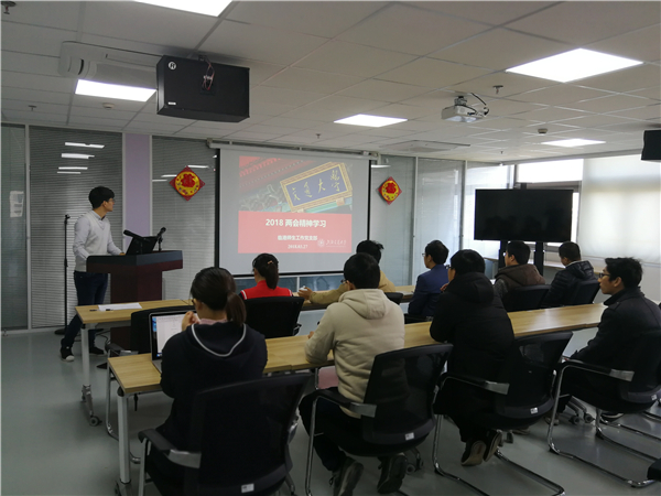 杨肖带领与会党员从多个方面对两会精神进行了学习。杨肖对两会职能、会议议程、内容等进行详细介绍;对两会新词“蓝天保卫战”、“居住属性”、“数字家庭,数字经济”、“全域旅游”、“河长制”、“海绵城市”、“农村土地的三权分置”、“清单管理制度”、“国家公园体制”、“人工智能”、“第五代移动通信”等进行了讲解。随后解读了两会热点,包括实体经济的转型,推动中国经济发展进入质量时代,贫攻坚的要求,落实扶贫款项,减税降费,减少个人工资税收,调控房地产,坚决打好蓝天保卫战,医疗保障水平,提高就业率,食品药品安全监督,户籍改革,降低电信资费等。