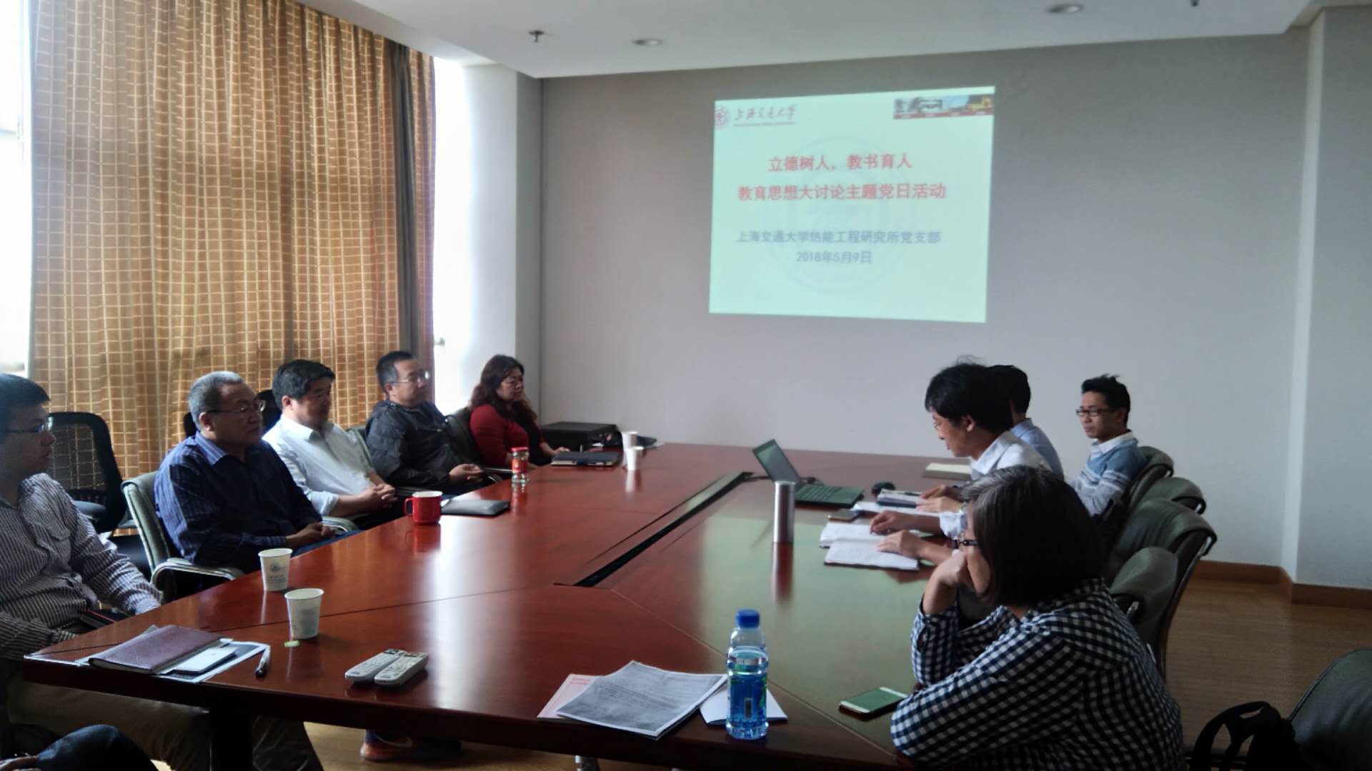 5月9日,热能工程研究所党支部组织全体党员和全所教师开展了“立德树人,教书育人”教育思想大讨论主题党日活动。