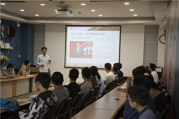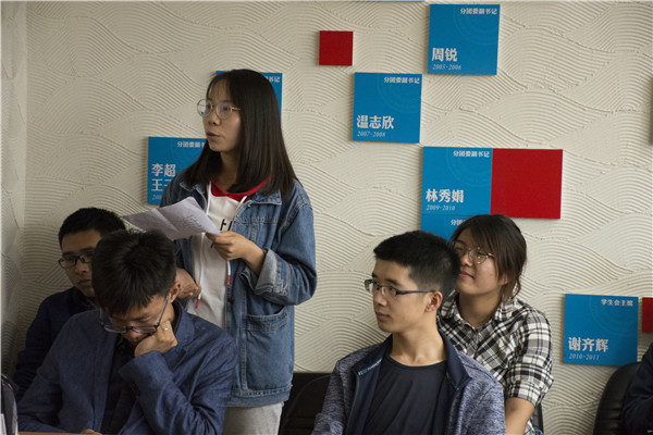会议伊始,支部首先表扬了胡真,吴建邦,金鹏飞等三名同学,由他们组成的队伍“核平大厦”在机械动力学院第五届党史校史知识竞赛中获得了季军。之后,赖平带领大家温习了习近平总书记在北京大学师生座谈会上的讲话。他用许多例子和名言警句详细阐述了习近平总书记对广大青年提出的四点希望:要爱国,忠于祖国,忠于人民;要励志,立鸿鹄志,做奋斗者;要求真,求真学问,练真本领;要力行,知行合一,做实干家。然后他回顾了前面四次“教育思想大讨论”,并就这次“教育思想大讨论”的几个议题让大家讨论。