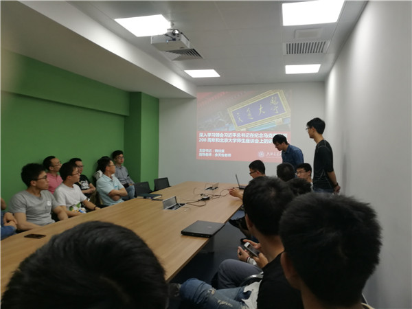 之后,韩佳宸书记首先带领与会同志学习了习近平总书记在北京大学师生座谈会上的讲话精神。他首先带领大家观看了新闻联播对于习近平总书记在北京大学师生座谈会上的讲话的播报视频。看完视频后,大家仍然意犹未尽,想要更深入的了解习近平总书记的讲话精神。韩佳宸又带领大家进一步学习了习近平总书记给广大青年提几点希望。习近平总书记在北大的重要讲话具有里程碑意义,是党的十九大以来总书记面向高等教育乃至整个教育战线作出的首次重要讲话,对新时代的高等教育和高校师生提出了系统的、鲜明的要求,指明了中国高等教育的发展之路。最后为了贯彻落实沪交委47号文件“中共买球官方网站委员会买球官方网站关于印发《买球官方网站教育思想大讨论方案》的通知”,进一步落实“立德树人、学在交大”的人才培养举措,加快建成中国特色、世界一流大学,与会研究生同志分别就学习学业、校园文化、校园管理等展开讨论。余天佐老师就相关问题做出答复,并表示会就大家讨论和反映的问题向学校学院部门反映,更好的促进学校、学院和同学们的共同发展和进步。