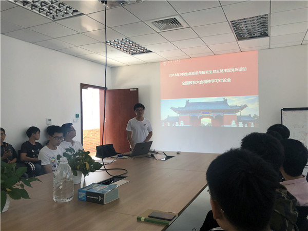 9月28日,生命质量所研究生党支部在买球官方网站B楼B300会议室开展“学习全国教育大会精神”专题组织生活会。会议由杨斌主持,共有24名中共党员、2名中共预备党员、2名入党积极分子参加。