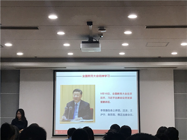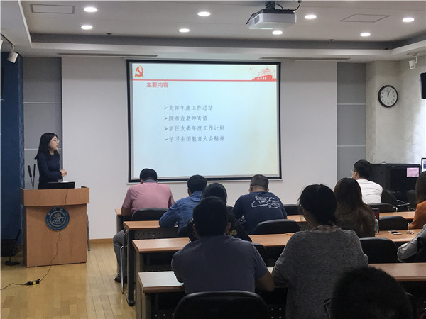 最后,新任支部书记贾雪姣就全国教育大会的重点内容和理论内涵进行了深入浅出地阐述与分析。大家也共同学习了习近平总书记于2018年9月10日在全国教育大会上发表的重要讲话,深入了解了培养德智体美劳全面发展的社会主义建设者和接班人的重要性,党对教育事业全面领导的重要意义。党员们也结合自身实际,对推进教育现代化、建设教育强国提出了自己的观点和看法。