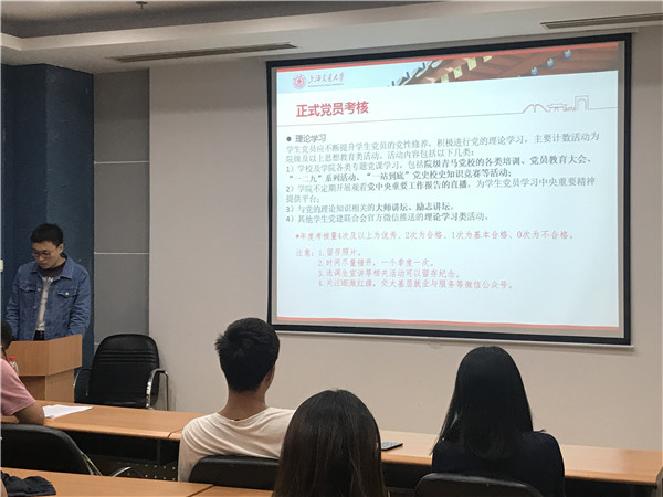 接着,支部新任支委班子依次和大家做了工作介绍。其中,支部书记贾雪姣针对支部的年度发展计划做了整理的布置与汇报,组织委员闫鸿志特别强调了支部党员年度考核规范。支部副书记李海玉、纪律委员程鑫和宣传委员申璐分别就自己的工作职能做出相应的解读和规范,获得与会党员的一致认可。