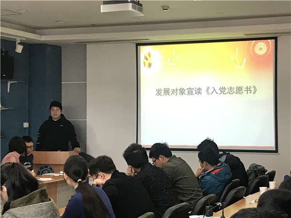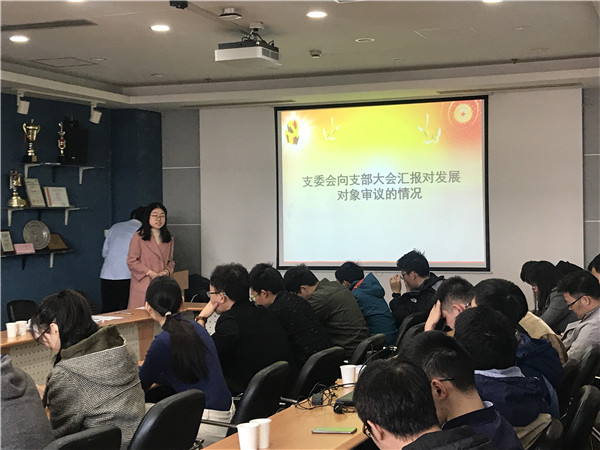 随后,本期发展对象储鹏同学就自身工作学习情况、入党动机、党性培养等方面,进行了简单的自我介绍,最终通过投票,接收为预备党员。最后,支部书记贾雪姣进行了本次党支部生活会的总结,对党支部后续活动进行介绍。组织委员闫鸿志也进一步介绍了党支部考核的相关事宜。
