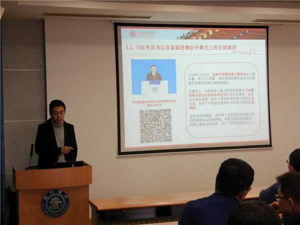 首先,杜环宇同志带领所有党员同志们一起深入学习了习近平总书记11月5日在首届中国国际进口博览会开幕式上的演讲。这篇题为《共建创新包容的开放型世界经济》的主旨演讲,从历史大势的高度,提出了推动各国开放合作的“三点主张”,宣布了中国加大推进扩大开放力度的“五项措施”,为中国一直倡导的共同维护自由贸易和多边贸易体制、共建开放型世界经济、构建人类命运共同体,注入了更加强劲的动力。