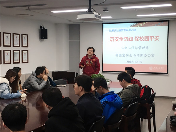 12月7日,工业工程与管理系“专业安全教育”在F210会议室顺利举行。六十余名博士生、硕士生参加本次活动,工业工程系副系主任、实验室主任夏唐斌为同学们进行安全培训。