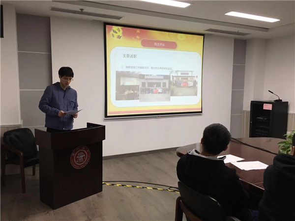 会议首先进行了年终民主评议,李涛代表支委会向全体党员进行工作述职。本年度,支委会尽职工作,在组织建设、思想引领等方面都取得了显著成效。支部切实加强党员队伍建设,重视支部党员发展工作;深入开展主题教育活动,扎实推进支部理论学习;始终坚持工作服务意识,努力丰富系所学生生活。本月,支部与教职工党支部联合开展了“支部讲堂”主题党日活动,与硕士生党支部联合开展了“缅怀伟人,砥砺前行”主题党日活动,这些活动都使党员同学接受了教育,增进了了解。李涛还对工作中存在的问题进行了反思和总结,对支部下一年的工作进行了展望。