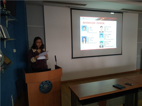 12月19日,制冷所研究生第一党支部交通安全宣传教育暨“双评双议双公开”专题组织生活会在机械动力学院F310举行。大会由制冷所研究生第一党支部书记殷靓主持。
