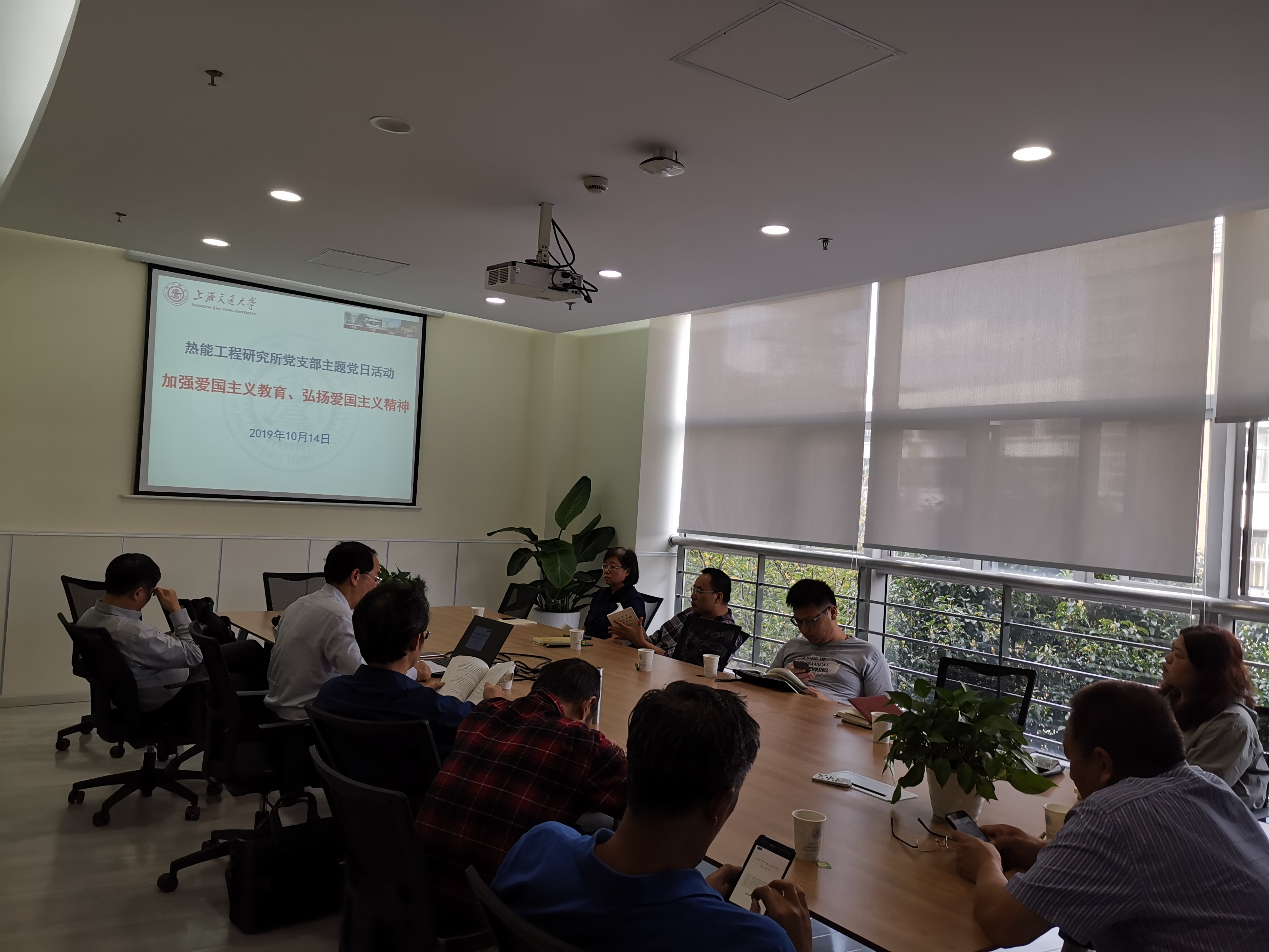 会上传达了《在“不忘初心、牢记使命”主题教育中加强爱国主义教育、弘扬爱国主义精神》的通知和《关于在“不忘初心、牢记使命”主题教育中对照党章党规找差距的工作方案》。大家集体学习了习近平总书记关于“弘扬新时代爱国主义精神”和“担当作为”的重要论述以及在中央政治局第二十九次集体学习时的讲话“大力弘扬伟大爱国主义精神 为实现中国梦提供精神支柱”。在学习交流环节,大家以“守初心、担使命、找差距、抓落实”为主题展开讨论,一致认为,要把爱国主义精神转化为实际行动,在本职工作中践行初心使命,主动担当作为,做好人才培养和科学研究工作。
