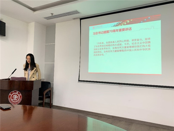 首先,由制冷所19级党员新生刘璐同志带领支部同学一起学习了习近平总书记纪念新中国成立70周年重要讲话精神。习近平总书记强调,建国70周年以来,全国人民同心同德,艰苦奋斗,取得了令世界刮目相看的伟大成就,今天已经没有任何力量能够撼动我们伟大祖国的地位,没有任何力量能够阻挡中国人民和中华民族的前进步伐。总书记的讲话激励了在场的党员同志,更加坚定了为共产主义事业奋斗终生的信心和决心。