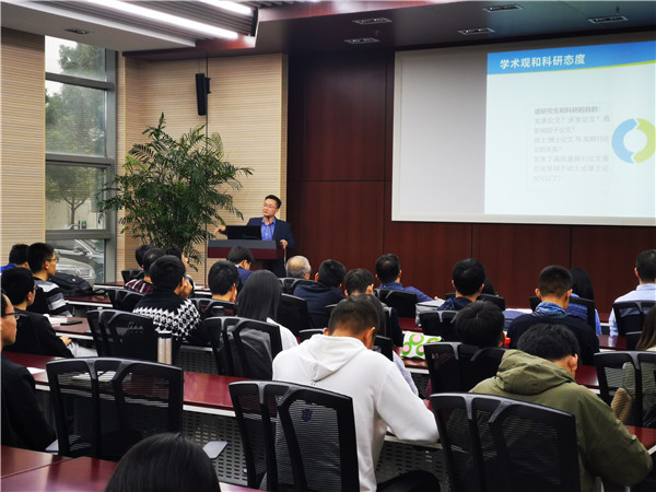 赵长颖围绕学术观、科研态度、学术道德三个方面,介绍了研究生创新人才培养。他指出要树立正确的学术观,崇尚知识和科学,培养科研兴趣和发挥特长;提高独立思考的创新思维和解决问题的能力,注重选题和学科交叉,做到理论和实践相结合,发扬勤奋努力、坚忍不拔的精神;注重个人品德和社会公德的培养,学习知识,增进本领,健全人格,扎实做好科学研究。