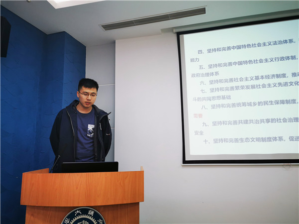 会上,党支部书记王清威首先带领全体党员学习了“中共中央关于坚持和完善中国特色社会主义制度推进国家治理体系和治理能力现代化若干重大问题的决定”。该决定在中共中央十九届四中全会上审议通过,这是一次具有开创性、里程碑意义的重要会议。推进国家治理体系和治理能力现代化,是坚持和完善中国特色社会主义制度的必由之路和重要保障。我们应当认识并珍惜我国国家制度和国家治理体系所具有的多方面的显著优势,自觉强化中国特色社会主义制度意识,提高推进各项工作的能力和水平。