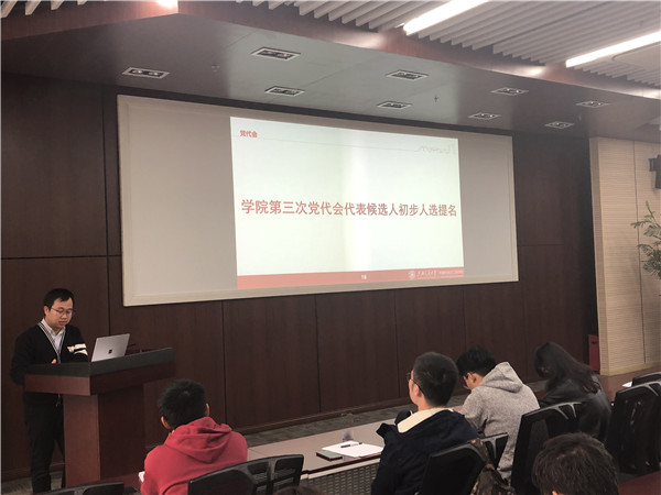 会议最后,夏建华介绍了学院第三次党代会代表候选人初步人选和党委委员候选人初步人选提名工作,并组织与会正式党员进行了投票。