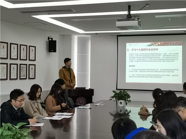 随后,由支部委员王兆奇同志带领大家学习十九届四中全会精神。全会充分肯定党的十九届三中全会以来中央政治局的工作,号召全党全国各族人民要更加紧密地团结在以习近平同志为核心的党中央周围,坚定信心,保持定力,锐意进取,开拓创新,为坚持和完善中国特色社会主义制度、推进国家治理体系和治理能力现代化,实现“两个一百年”奋斗目标、实现中华民族伟大复兴的中国梦而努力奋斗。党的十九届四中全会,是在庆祝新中国成立70周年的重要节点,向全面建成小康社会、实现第一个百年奋斗目标迈进的关键之年召开的一次重要会议。会议表决通过《中共中央关于坚持和完善中国特色社会主义制度、推进国家治理体系和治理能力现代化若干重大问题的决定》。这是坚持和完善中国特色社会主义制度、推进国家治理体系和治理能力现代化作出的行动纲领和政治宣示。