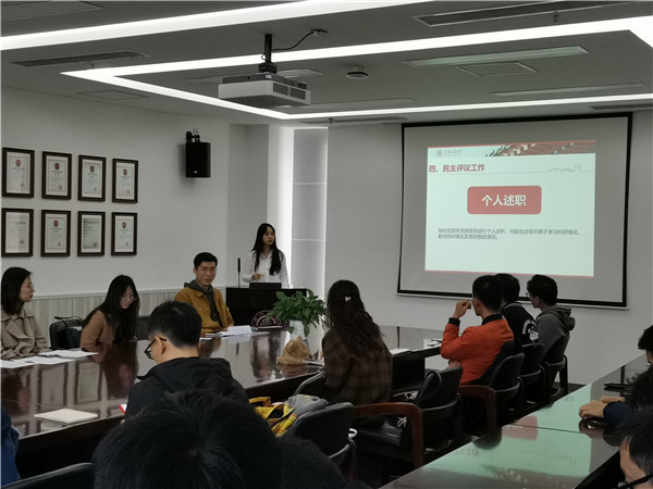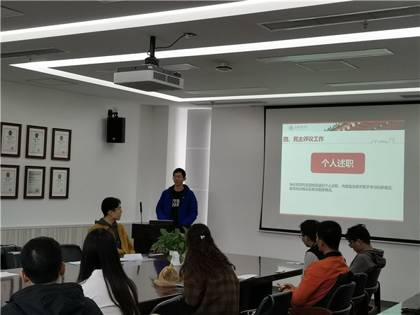 11月19日中午,制冷所研究生第一党支部在机械动力学院F210教室举办十一月党支部组织生活会。本次大会由制冷所研究生第一党支部党员王兆奇主持,共分为四项议程:制冷所研究生第一党支部2019年换届大会、“不忘初心、牢记使命”主题教育、学习十九届四中全会精神和《决定》,以及2019年民主评价工作。