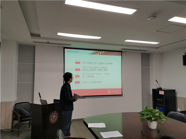由于热能工程所研究生党支部原支委临近毕业,所以支部进行了支委换届工作,选举了新任支委。刘松霖同志为新任党支部副书记,吴晓峰同志为新任党支部宣传委员,两位新任支委分别进行了自我介绍。新任党支部副书记刘松霖表示,将会在未来的支部工作中尽全力奉献自己,帮助党支部工作的推进。吴晓峰则表示,自己会努力做好本职工作,并且与大家一起将党支部建设好。