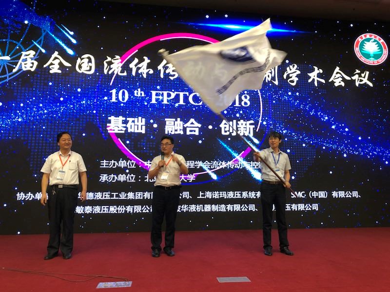 7月25日,第10届全国流体传动与控制学术会议闭幕式上,买球官网机电控制与物流装备研究所刘成良教授介绍了第11届全国流体传动与控制学术会议筹备情况,陶建峰老师代表承办方接过了中国机械工程学会流体传动与控制分会的会旗。这是买球官方网站首次取得该会议举办权,会议将于2020年在上海举行。