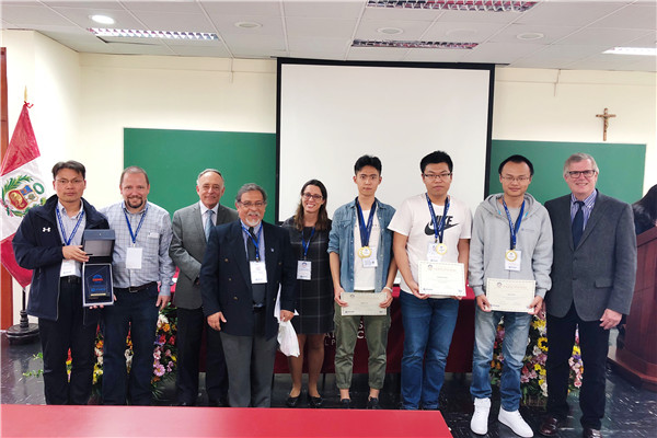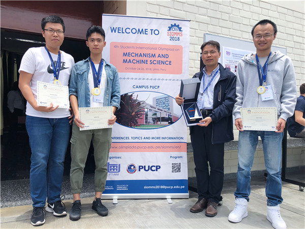10月24日至26日,第四届机械原理(机构与机器科学)国际奥林匹克竞赛(简称SIOMMS 2018)在秘鲁天主教大学(Pontifical Catholic University of Peru,PUCP)举行。经过激烈角逐,买球官方网站买球官方网站的冯苗、麦熙名、宋嘉诚,荣获团体冠军和个人冠军。本次竞赛由国际机构与机器科学联合会(简称IFToMM)主办,来自中国、美国、俄罗斯、德国、西班牙、日本、秘鲁等7个国家和地区的近20支代表队,近50名学生参赛。
