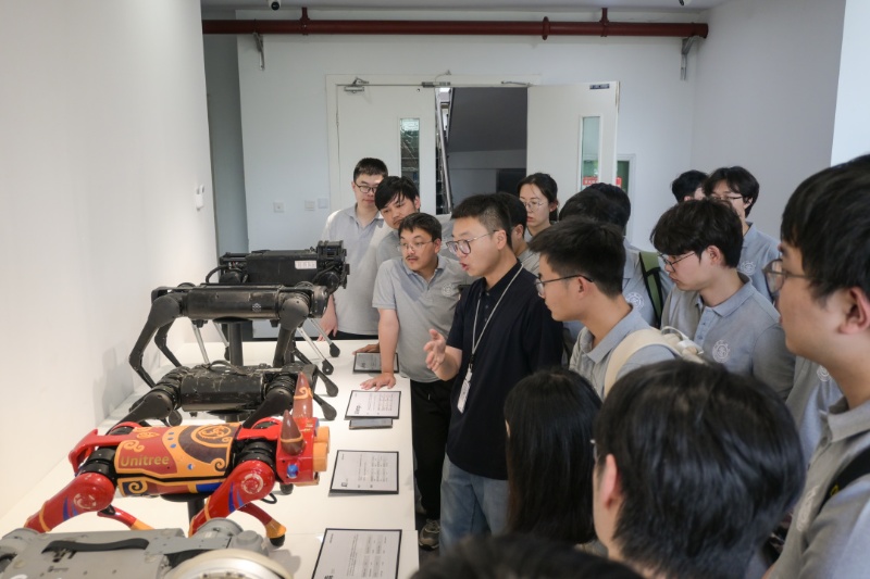 首先,实践团在企业代表的讲解下,参观了Laikago、Aliengo、Go1等足式机器人,以及G1,H1等人形机器人,观看了工作人员现场操作四足机器人和人形机器人,展现了机器人的静态负载和多种运动姿态,让同学们感受到最前沿的机器人发展水平。
