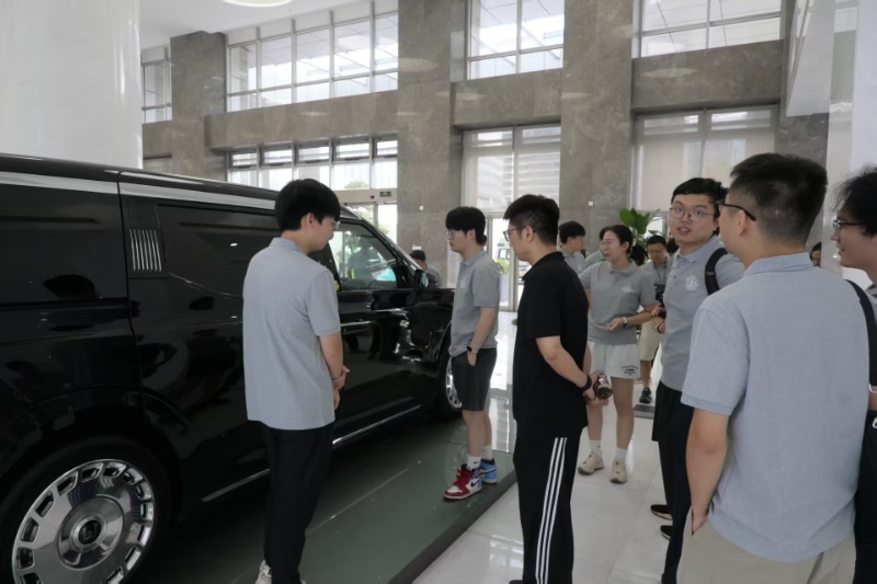 实践团首先来到吉利汽车车型展示大厅,在技术人员的专业讲解下,同学们系统观摩了吉利旗下热销车型及最新技术成果。从纯电、混动到增程式动力系统的参数对比,到智能座舱、自动驾驶技术的实际应用,同学们结合专业背景展开了热烈讨论。