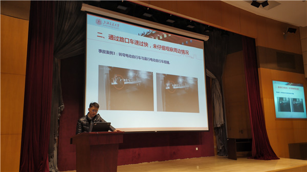 紧接着余天佐与大家一起观看了校园交通事故案例。截止11月,我校2018年校内共发生交通事故96起,发生原因主要有:随意变道、通过路口不注意查看周边情况、逆向行驶、雨天汽车视线被挡、操作失误。这些事故的视频触目惊心,给同学们留下了深刻的印象,余天佐也叮嘱大家注意出行安全,遵守交通规则。