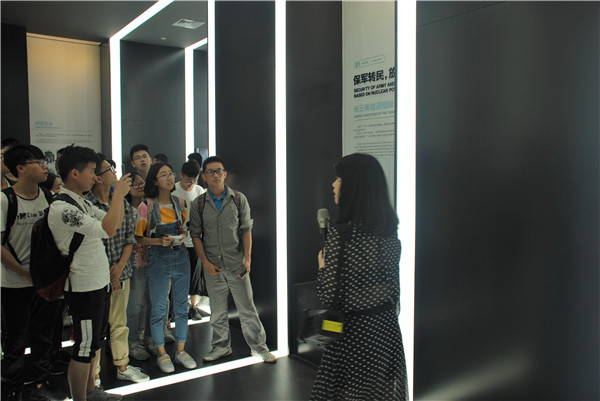 秦山核电科技馆是中国目前最大、公众体验最丰富、公众适用性最强、最具特色的核电科技馆。科技馆的一层以“核能与发展”为主题,在讲解员的解说下,同学们学习了中国核电的发展历史,参观了核电厂内部安全壳、稳压器、燃料组件、蒸汽发生器等重要组件的实物模型,了解了钠冷快堆、超高温气冷堆、熔盐堆等第四代核电技术的发展状况。