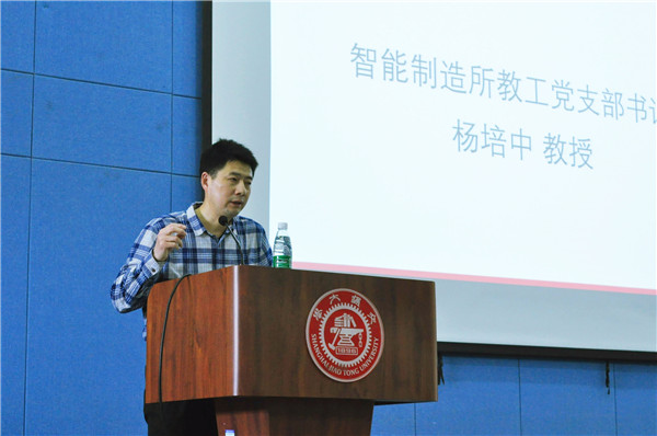 随后,智能制造所教工党支部书记杨培中老师分享了二十多年来的教学和科研经历和感受。他谈到,人生面临的大部分情况,不是因为有希望才坚持,而是因为坚持才有希望,鼓励同学们不仅要“与时俱进”,还要“与世俱进”。他告诫同学们“业精于勤荒于嬉,行成于思毁于随”,要养成独立思考的习惯。最后,他提出三点建议,一是大家每个人都要有自己的梦想,二是要学会管控自己的时间,三是要保持强健的体魄。