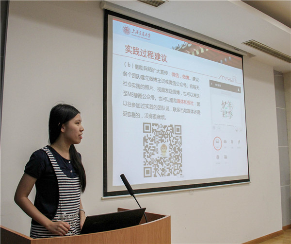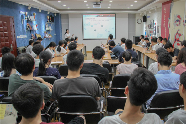 至社会实践技能培训环节,来自分团委的官芷凌和汤逸磊分别进行了新闻稿和影像记录培训。官芷凌从她撰写新闻稿的经历出发,讲述了撰写新闻稿的规范及技巧。而汤逸磊讲解了拍照的技法及注意事项,分享了自己的拍摄心得。他们见解独到、语言幽默诙谐,现场气氛欢快活跃。