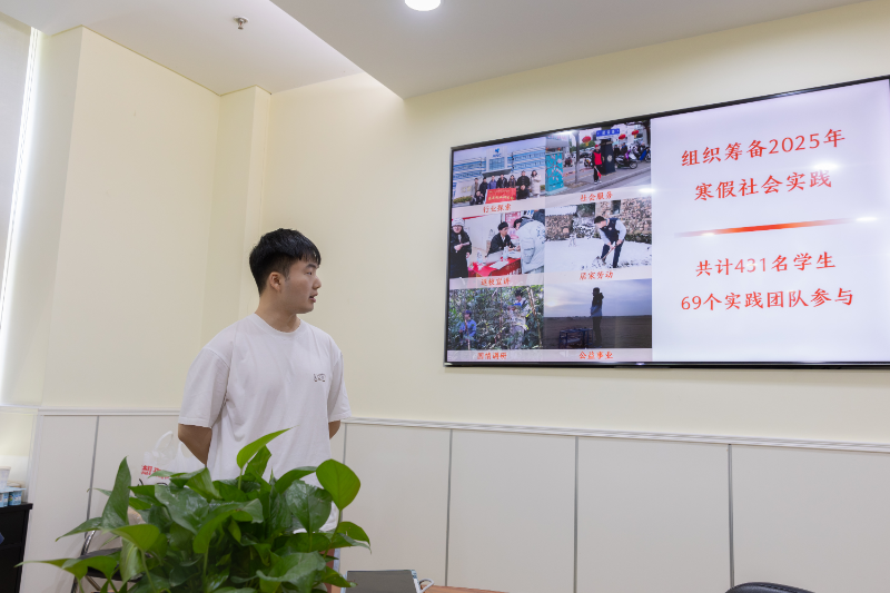 主席团成员于浩宁进行工作汇报,他从工作成效、外联交流、组织建设、人才培养等多角度,对学期内团委学生会的工作进行汇报;并从丰富知行学习模式、抓牢组织自身建设、注重骨干个人成长三个角度做工作展望,明确了团委学生会未来的工作方向。