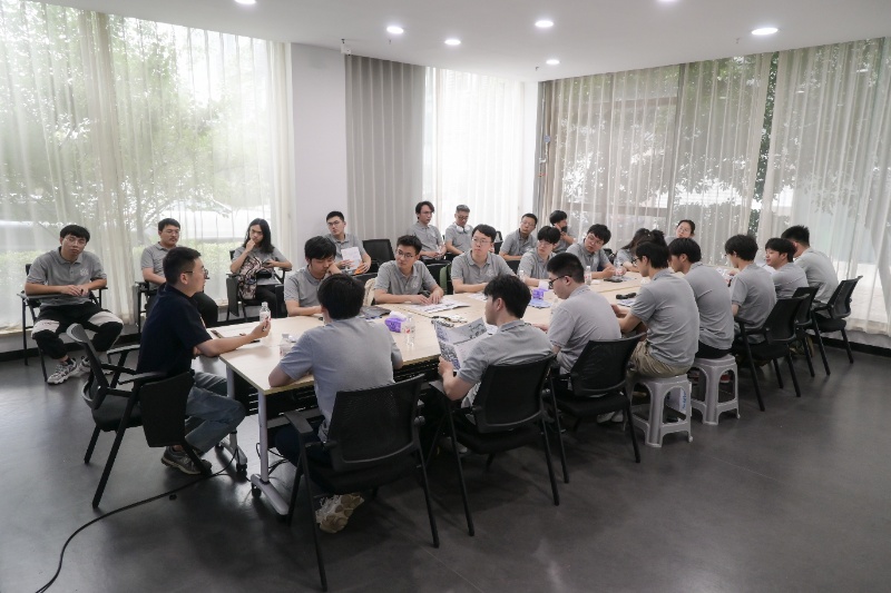 随后实践团成员和宇树科技工作人员进行座谈交流,宇树科技人力资源经理张冬冬首先为同学介绍了宇树科技的创立历程、研发能力、发展规划,以及公司主要的研究方向。张冬冬对同学们所关心的就业问题等进行了详细的回答,并以宇树科技自身发展现状与未来计划,系统地介绍了所需人才方向与类型。他特别提到,十分欢迎交大同学应聘宇树科技,或与宇树科技展开交流合作。