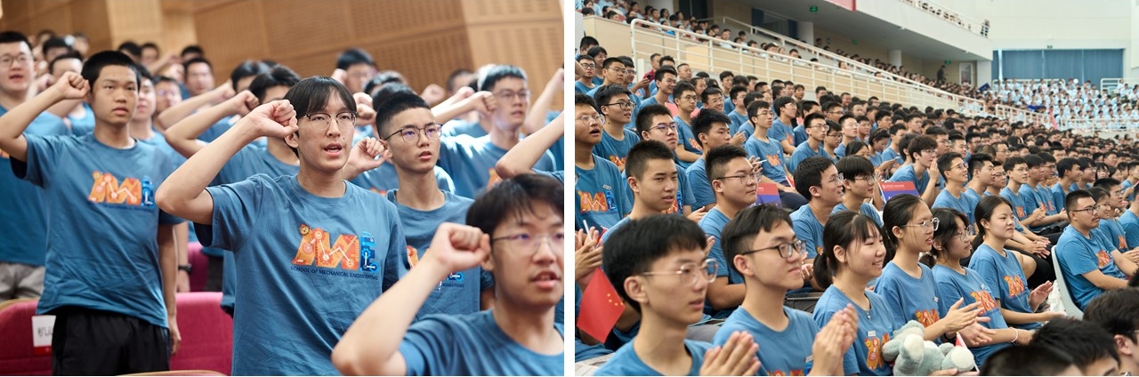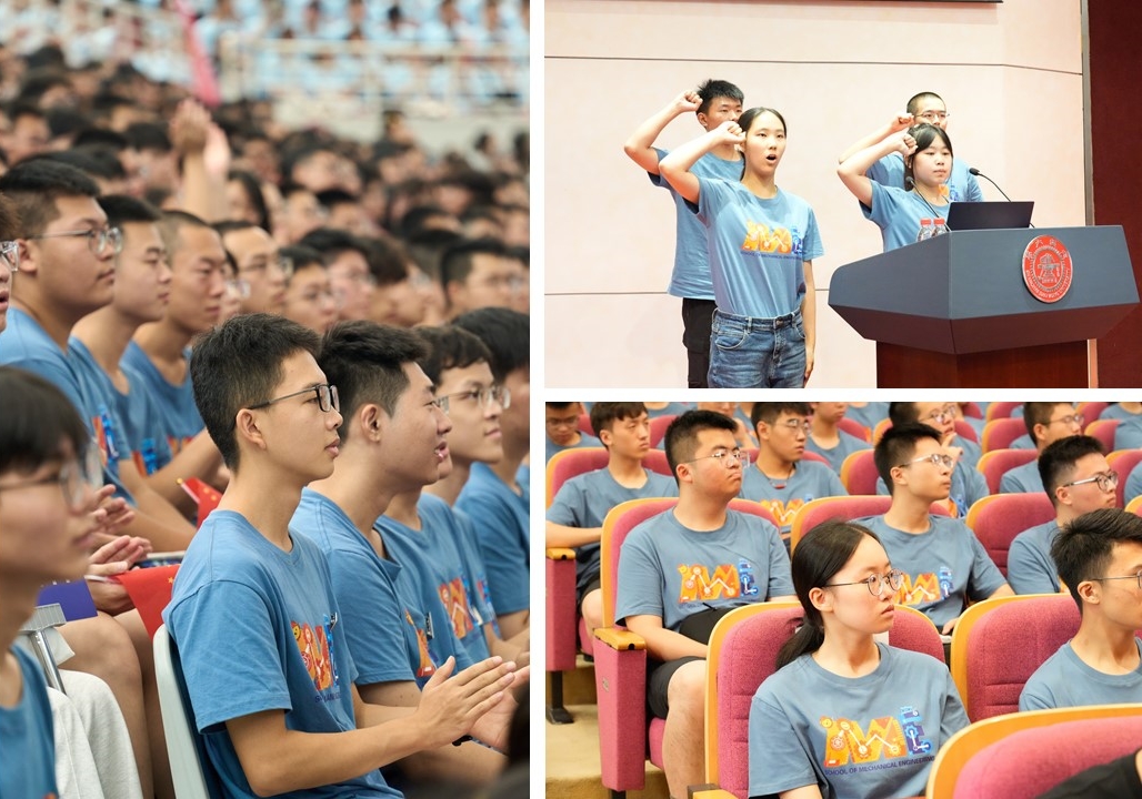 全体新生庄严宣誓:“我将谨记‘饮水思源,爱国荣校’之校训,传承百年机动精神,诚信为本、精勤为学、脚踏实地、追求卓越,树立学术理想,坚守行业情怀,为制造强国实业兴邦而奋斗终身!”