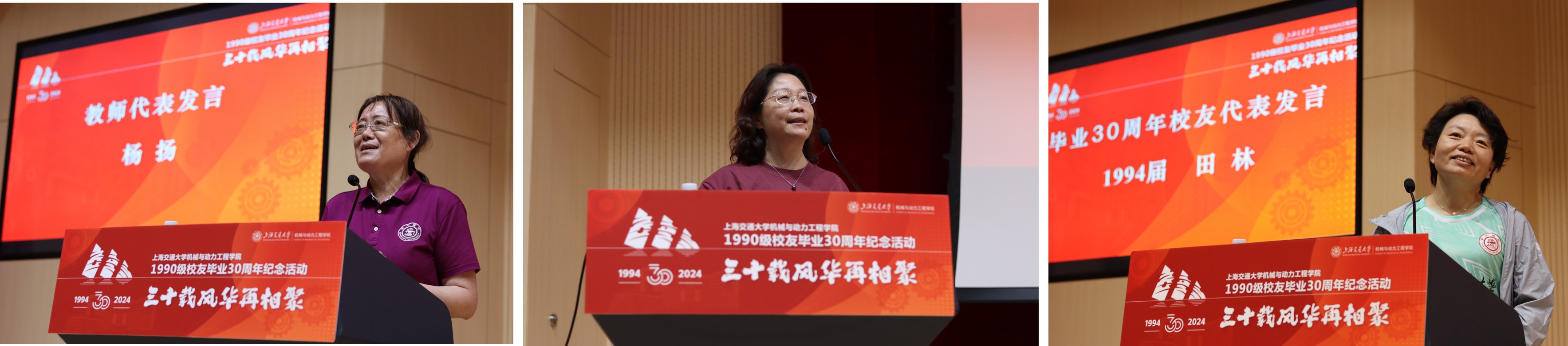 教师代表杨扬回顾了在学院工作的经历,讲述了校友们在学校学习、生活的故事,号召校友们爱祖国、爱学校、爱学院,关心和支持学院发展。六系校友代表胡薇结合自身求学工作经历,表示学院的进步离不开一代代机动人的努力,祝愿学院继往开来、更上一层楼。二系校友代表田林回顾了毕业30年的经历,鼓励校友们加强沟通交流,加深与母校之间的联系。