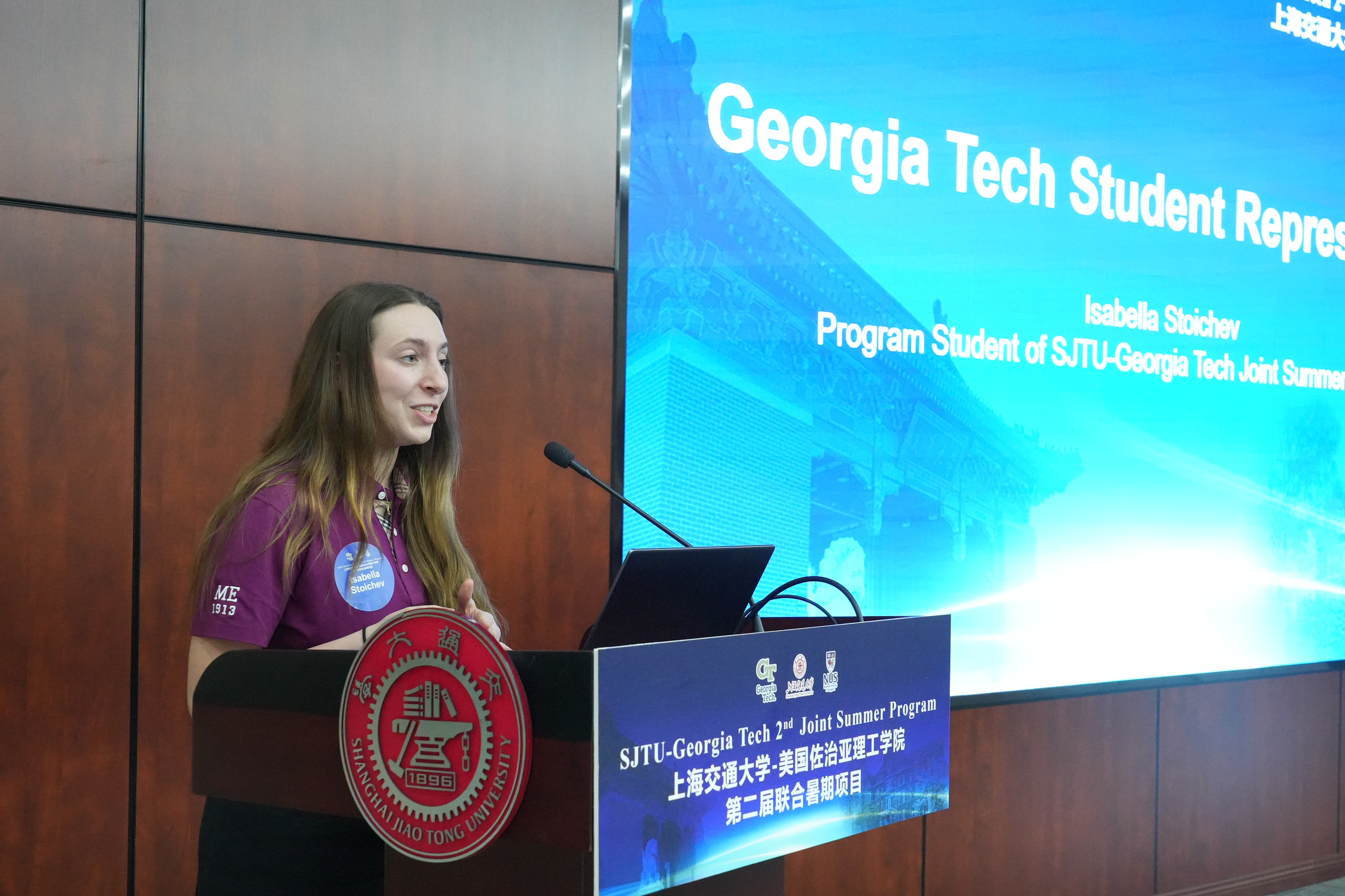 佐治亚理工学院本科生代表Isabella Stoichev表示参加国际交流项目一直是大学时期的梦想,鼓励大家在学习专业知识能力的同时,跳出自己的舒适圈,积极体验中国的文化和语言,学有所成、学有所获。