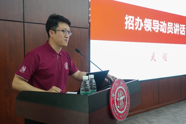 武超强调拥有高质量的生源有利于推进学校高质量人才培养,学院是学校招生队伍中重要的力量之一,希望大家与时俱进、开拓创新,把握招生工作的特点和规律,精准务实地做好招生宣传工作。