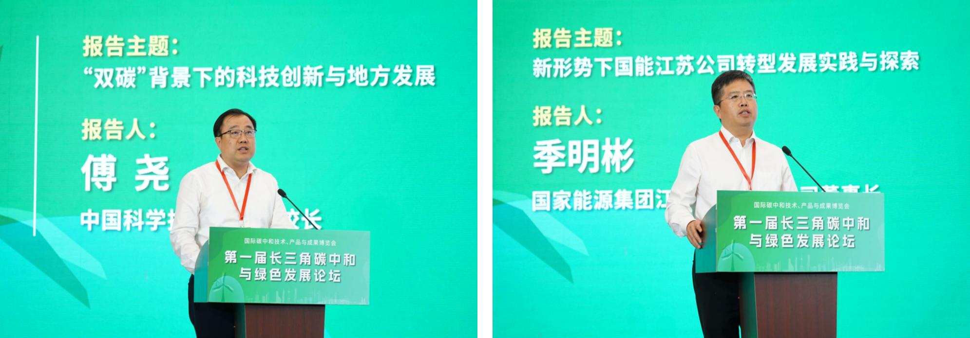 中国科学技术大学副校长傅尧、国家能源集团江苏电力有限公司董事长季明彬分别做题为《“双碳”背景下的科技创新与地方发展》和《新形势下国能江苏公司转型发展实践与探索》的报告。