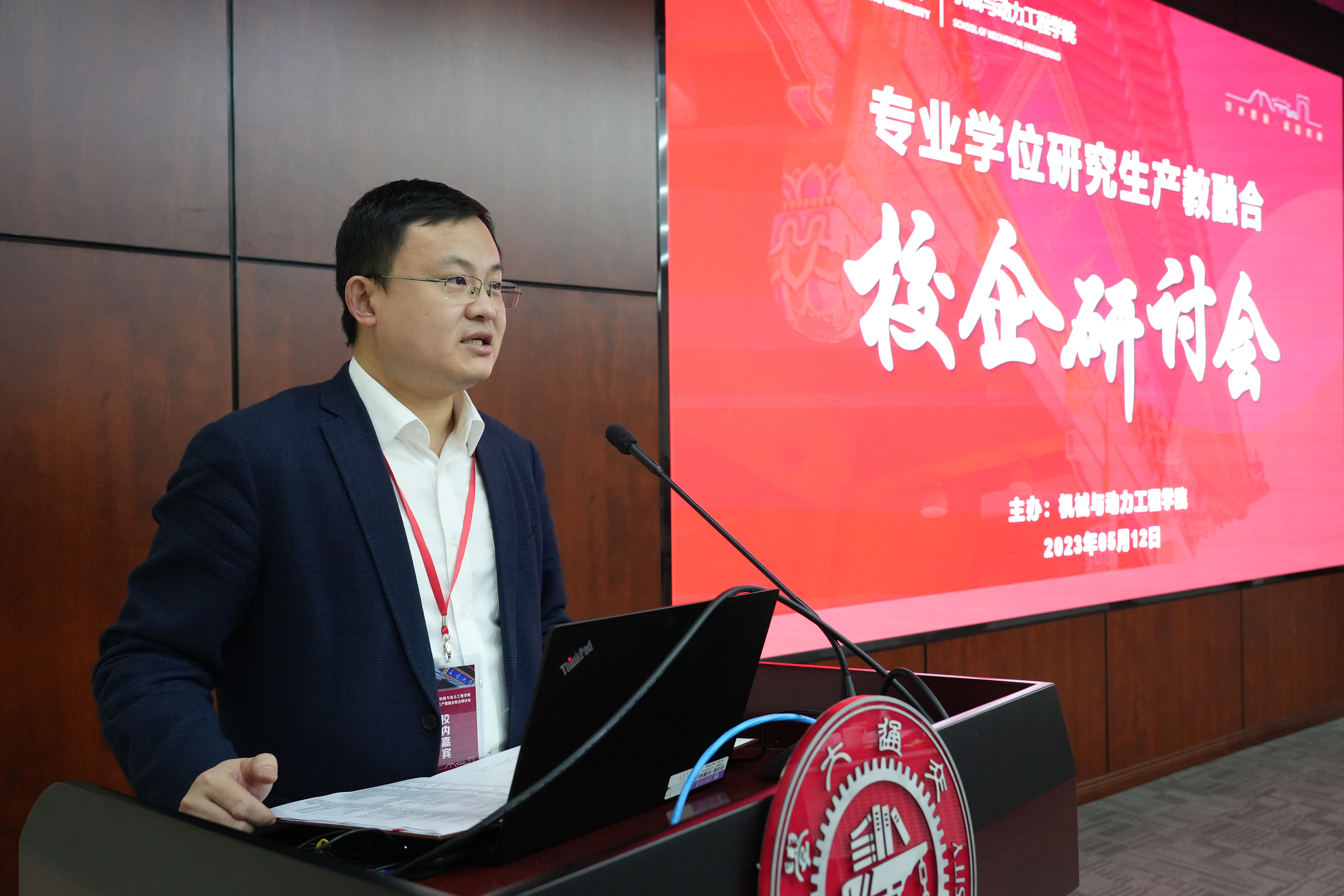 李玉阳介绍了学院基地联培现状及校企联合推进事项、4个工程硕博士培养改革专项和6个校级工程硕士改革专项基地的建设任务,表示学院将与企业联合,从课程、培养、管理三个方面全面推进基地建设,建成“一点三面”管理模式,破解人才培养难题,全面保障基地人才培养质量。