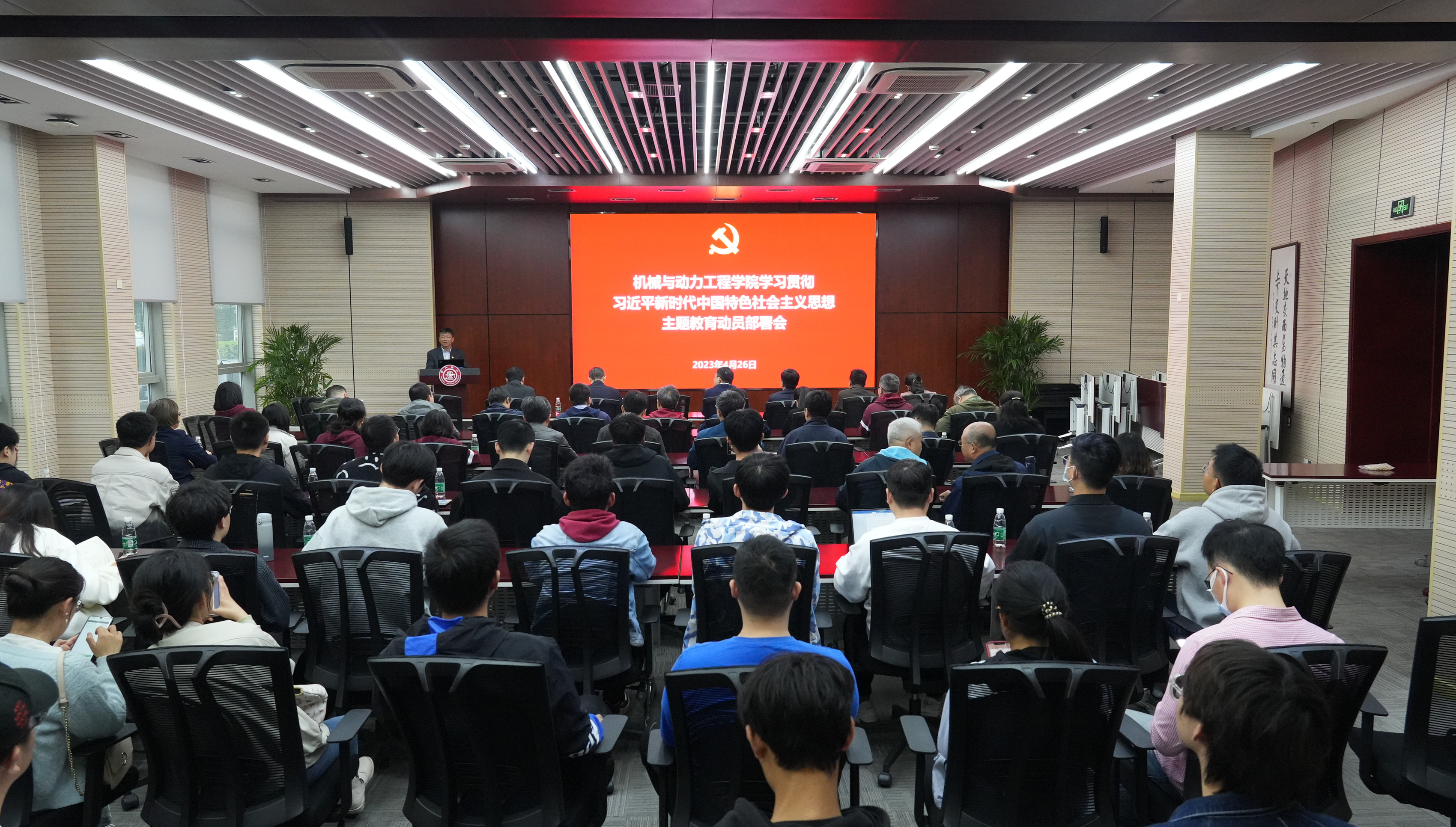 学院党委书记林立涛作动员讲话,指出开展主题教育是党中央为全面贯彻党的二十大精神、动员全党同志为完成党的中心任务而团结奋斗所作的重大部署,是深入推进新时代党的建设新的伟大工程的重大部署,全院师生党员要按照学校的统一部署和要求,扎实推进,走深走实,推进学院“双一流”建设,开创事业发展新局面。他提出三点要求:提高政治站位,全面深刻把握开展主题教育的重大意义和目标要求;严格落实要求,全面推进学院各项事业发展;加强组织领导,全力营造浓厚的宣传舆论氛围。他强调学院领导班子和全体师生党员要原原本本学习领会中央精神,认真对照学校、学院实施方案和主题教育工作清单,开展好“理论武装大学习”、“责任使命大调研”、“争创一流大实践”、“检视整改大提升”、“教育成果大转化”等工作,以理论学习为基石,学深悟透强本领;以调查研究为支撑,推动发展创一流;以检视整改为抓手,建章立制提质效。他表示开展学习贯彻习近平新时代中国特色社会主义思想主题教育是学院当前和今后一个时期的重大政治任务,全体师生党员要以高度的政治自觉、饱满的政治热情、严肃的政治态度,在学校指导组的指导下,紧紧围绕主题教育总要求、目标任务和工作安排,有序扎实做好每一项内容,把主题教育成效转化为推进学院改革发展的强大动力,确保主题教育取得实实在在的成效。