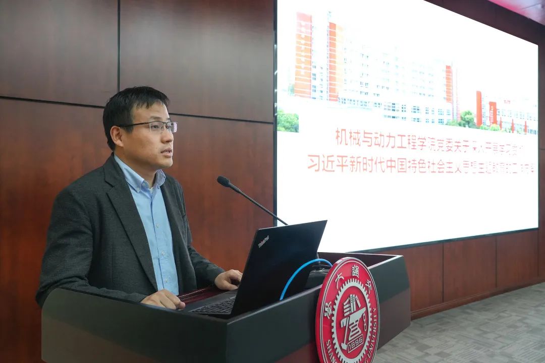 学院党委副书记胡永祥介绍了学院开展主题教育的工作方案和党务工作者培训班方案,详细解读了领导班子、基层党支部和师生党员的工作任务和具体事项,强调全院师生党员要坚持学思用贯通、知信行统一,把习近平新时代中国特色社会主义思想转化为坚定理想、锤炼党性和指导实践、推动工作的强大力量,努力在以学铸魂、以学增智、以学正风、以学促干方面见实效,推动学院各项事业高质量发展。