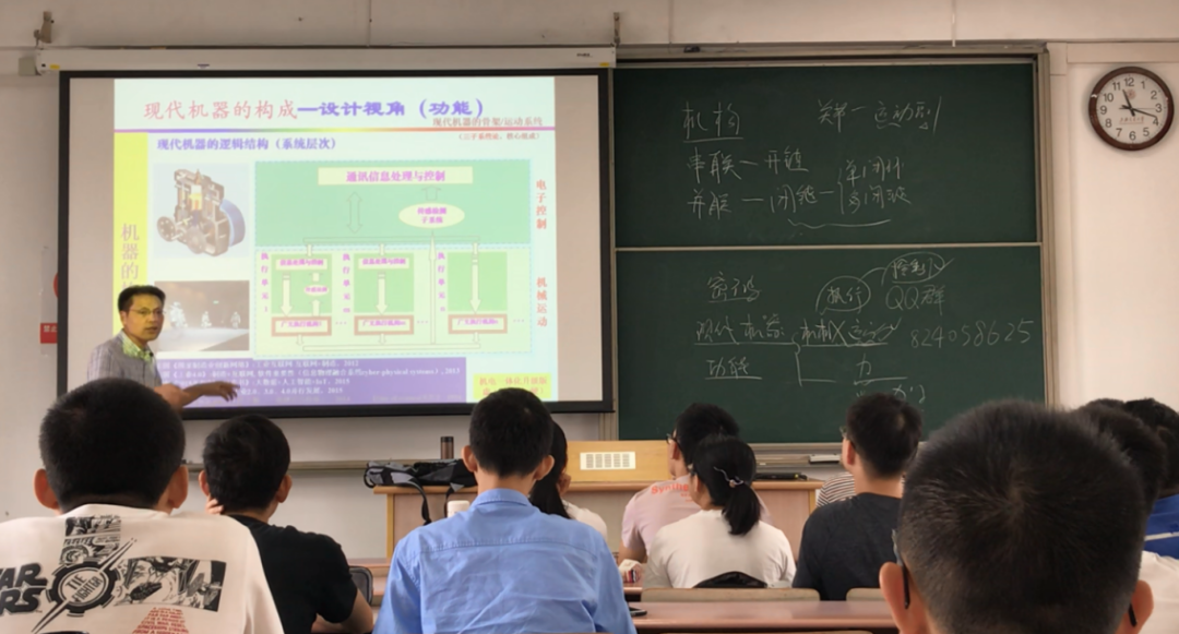 《设计与制造Ⅱ》是机械工程、能源与动力工程、工业工程、核科学与核技术等专业本科生的专业基础必修课,是学院“设计与制造”系列课程中承上启下的核心专业课程,是对原“机械原理”“机械设计”两门上海市精品课程的融合与重塑。课程采用课堂教学-课外项目设计制作“双主线并行”贯穿式项目式教学方法,分中文教学和英文教学,课程内容主要包括机械原理、机械设计的基本概念、基本方法,以及标准零部件、电机、电控、传感等电子元器件的基础应用和选型知识。课程旨在帮助学生构建对现代机械/机器的基本认知,培养学生现代机器的原始创新设计的初步能力。
