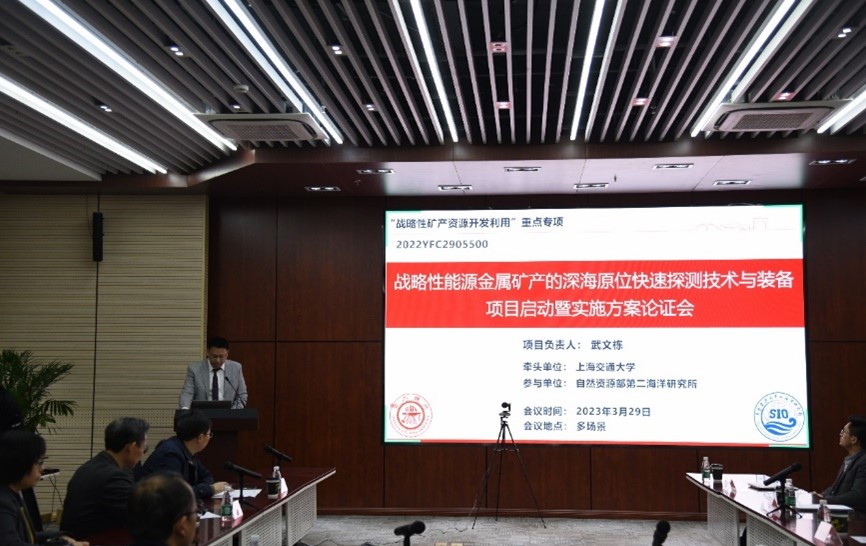 3月29日,国家重点研发计划“战略性矿产资源开发利用”重点专项“战略性能源金属矿产的深海原位快速探测技术与装备”青年科学家项目启动暨实施方案论证会顺利召开。本次会议以线上线下结合的方式进行。科技部中国21世纪议程管理中心资源处副处长秦媛,上海市科委二级巡视员、社会发展科技处处长郑广宏;项目指导专家组中煤科工集团党委常委、副总经理刘见中研究员,清华大学碳中和研究院副院长王哲教授,复旦大学光科学与工程系主任吴翔教授,中科院上海微系统所冯飞研究员,自然资源部海洋三所李云海研究员;项目咨询专家组买球官方网站俞进教授,自然资源部海底科学重点实验室副主任李小虎研究员,买球官方网站黄梅珍研究员等出席。买球官方网站校务委员会副主任孟光教授、科研质量管理处副处长沈利冰、买球官方网站副院长谷国迎教授、项目负责人武文栋副教授及研究团队骨干等参加了会议。启动会开幕式由谷国迎主持。
